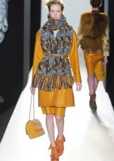 - A scarf is like a coat. The scarf is folded in a triangle, throws over the shoulders and tied at the waist with any belt. It turns out a fashionable interesting element that is worn both with trousers or a skirt under a blouse, and with a dress.