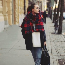 - Voluminous large scarf - hit of the autumn-winter season. It is cozy, comfortable and warm. Suitable for absolutely any outfit - good with a classic coat, a democratic parka and a freedom-loving biker jacket.