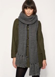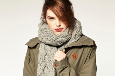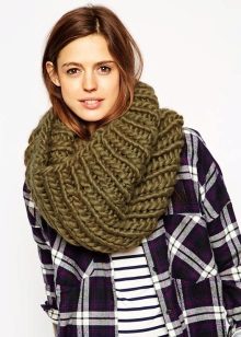 Voluminous large coarse scarves perfectly complement the images with coats, down jackets, jackets, parkas, raincoats. They make the image cozy, give warmth and comfort to their owner.