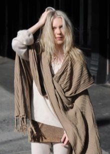 - Scarf like a cape. The easiest option is to throw the thing over your shoulders. Stylish, warm and fashionable.