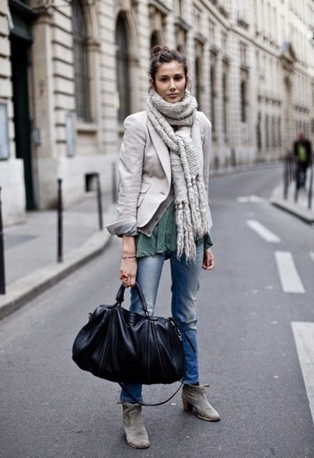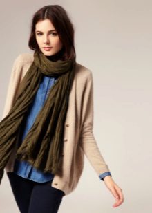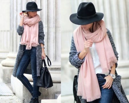 A large scarf is a universal thing, therefore it is worn with almost any element of a women's wardrobe. But combining a scarf with other clothes depends on what material it is made of.