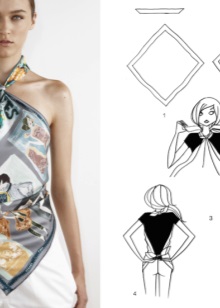 - The scarf is like a top. Scarves made of light materials are suitable. Everything is simple - wrapped and tied with a bow on the back.