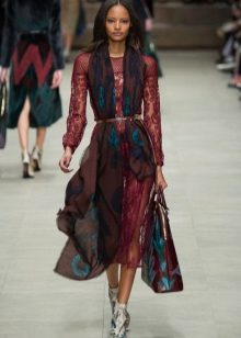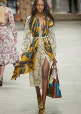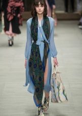 Fashion house Burberry Prorsum offers to wear long scarves under the belt. To do this, just wrap the scarf around the neck and tie the belt over the free hanging ends, moreover, one of them must be longer.