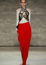 Bibhu Mohapatra brand proposed the original idea to wrap a scarf around the neck and cross it on the chest, while the free ends must be tied up behind and hidden under clothes. A long scarf made of thin fabric can be tied around the neck in the form of a large and effective bow, and hang the free ends in the middle of the chest or move it over the shoulder.