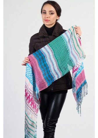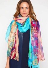 A light scarf can also be used as a tunic over outerwear. The most win-win combination will be a bright scarf covering the shoulders of a black plain coat.