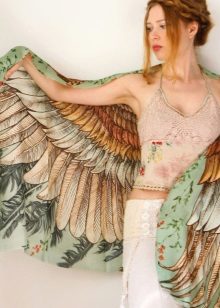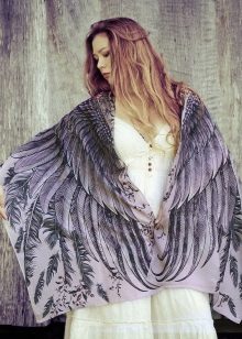 - Shovava winged scarf made of silk with the addition of warm cashmere reaches 200 cm in width and 70 cm in height. This is one of the most original winged prints, which is made in only one copy. The model will definitely attract the attention of others with its unique style, a riot of colors and a unique silhouette.