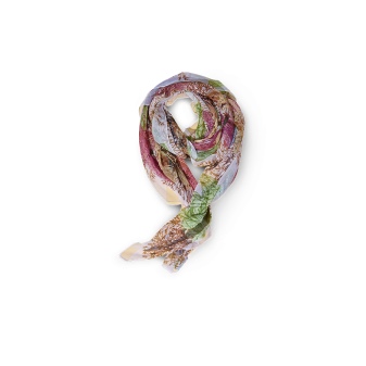 After drawing each detail, it is scanned in high resolution and the colors are adjusted on the computer. Hand-painted painting completes the creation of a masterpiece. In the new season, the collection will be replenished with scarves and stoles with motifs of Italian flowers.