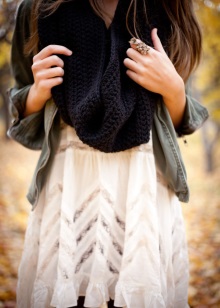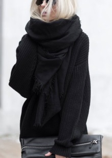 - In the cold season, voluminous black models will come in handy. Knitted scarves made of wool and mohair will protect from winter cold and dank autumn rains, as well as serve as a wonderful decoration that can distinguish you from other people.