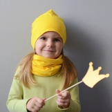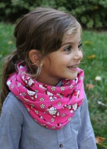 Also, you can sew a snood pipe from knitwear for your child. In this case, its width is calculated based on the circumference of the head minus 1-2 centimeters. Since the knitwear stretches well, it will not be difficult for a child to wear such a product. At the same time, the fabric will fit very tightly to the neck of your child and it will be warm even in bad weather.