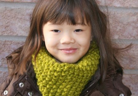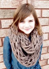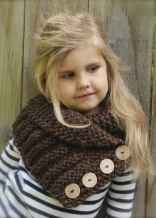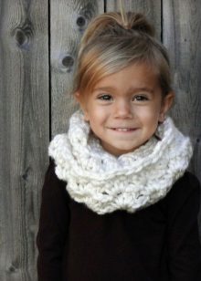 The original children's snood-clamp is better to knit from thick threads. Creating such a fashionable little thing is easy. At the same time, you will receive a unique accessory that will be only for your child in a single copy.
