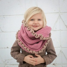 Different types of elastic bands are suitable for such a scarf. If you are already familiar with many knitting techniques, then you can try various patterns, such as bundles, berries, etc. They will very effectively decorate your baby’s voluminous snood.