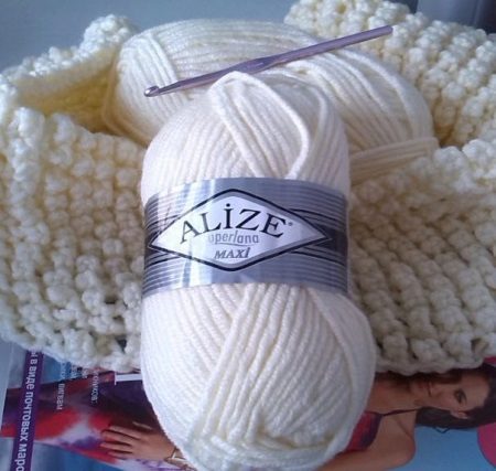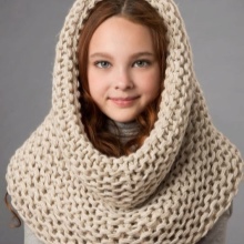 At the peak of fashion today, knitted snoods. This fabric is made using the technique of coarse knitting. Since these scarves adhere to the delicate skin of the face and neck, yarn should not be pricked.