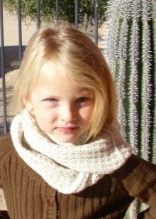 With all the advantages of pure natural wool, it will not work. It will be preferable to use threads made of wool with acrylic. Alpaca wool is the most tender, but expensive. Considering that you don’t need a lot of threads on a children's scarf, you can also purchase it.