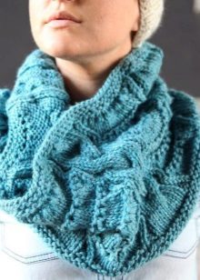 A short collar is simply put on the neck and straightened. As a rule, it has a volumetric texture, which allows it to better keep heat. Such round scarves look more original than ordinary ones.