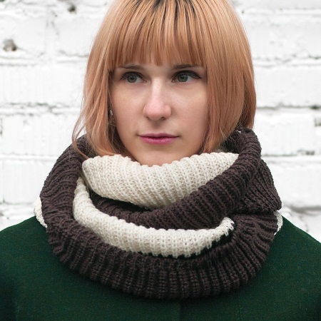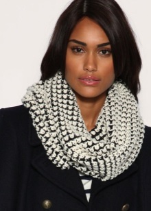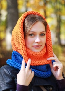 To embody a stylish bow in a casual style, pay attention to loose-cut scarves-snoods. They are often called round or clamps due to their stitched edges. This model is universal, because it can even be used as a headdress in the form of a hood.