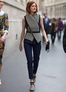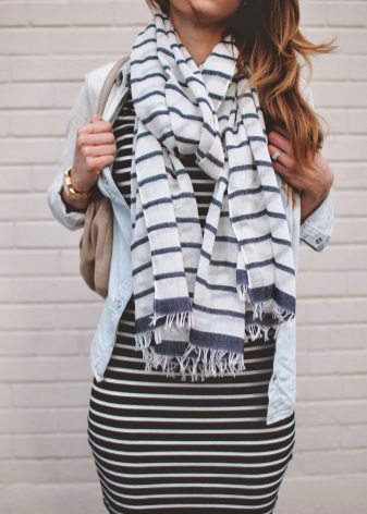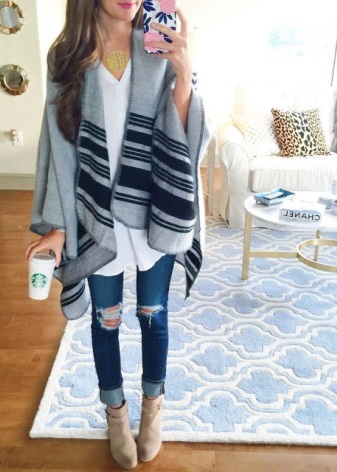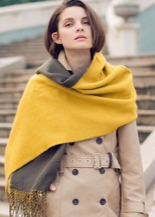 For warm days, a long scarf made of thin cotton or cashmere is ideal. A two-tone stole can be worn as a poncho if wrapped around the neck. To give a silhouette of harmony, it is worth paying attention to models with a vertical strip.