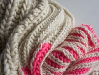 Two-color scarves can be represented by large viscous in the form of braids, interwoven threads or rhombs. The most popular yarns in the new season are wool, angora and mohair.