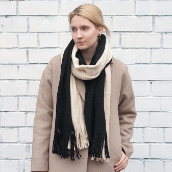Two-color scarves can be safely worn with a coat, leather jacket or down jacket. They will help to add new colors to the image, will become a decoration of the bow.