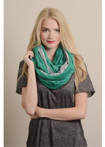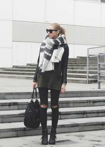 A scarf can be worn not only with outerwear. Two-tone models look great in tandem with dresses, ranging from mini to maxi. They can be combined with leather trousers or your favorite jeans. Two-color scarves look beautiful and harmonious on top of sweaters or blouses.