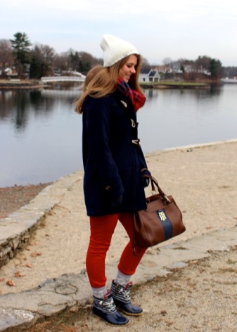 Two-tone scarves with English rubber are very popular. They give onion femininity and grace. Models often adorn buttons, pompons, a brooch or beautiful stones.