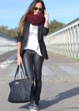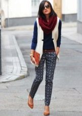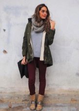 - When choosing a snood for your jacket, pay attention to the colors. Variegated scarves are suitable for plain jackets, and, conversely, a plain scarf will look more harmonious on a bright jacket with a color print.