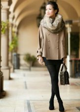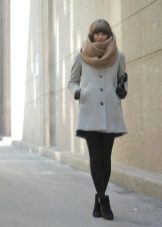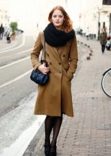 With classic coats you can wear any snood. It can be monochromatic, decorated with beads or buttons, with a pattern ... A short scarf made of faux or natural fur also looks good with such a coat, but only if there is no fur trim on the coat.