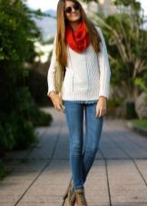 But, contrary to popular belief, a scarf collar is perfect for summer clothes. A bright scarf will go well with classic plain dresses, adding brightness and elegance to them. And with summer T-shirts and jeans, you should choose a scarf from light and flowing fabric, for example, from chiffon, cotton, silk, or lace snood. A bright printed scarf with things of delicate pastel colors looks very good.
