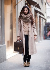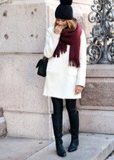 Twisting the scarf around the neck twice, you need to spread it on the sides and give volume. This method will divert attention from the lush hips and create a balance to the silhouette. If the scarf is not very thick at hand, then you can not tightly wrap the accessory around the neck twice, then connect the ends of the scarf with a knot and hide it under the scarf. A scarf stretched in the chest area visually lengthens the neck.