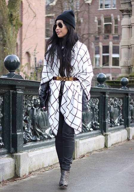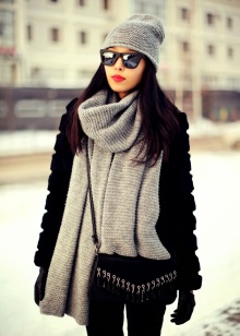The trend of this season is a huge winter accessory by the standards of a standard scarf. In such a scarf it will definitely be very warm and comfortable in any weather. Such a large scarf can be worn even as a poncho fashionable this season, skillfully picking up the necessary strap for it.