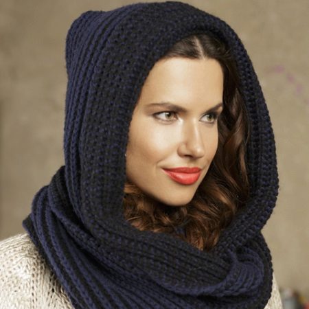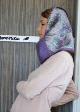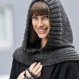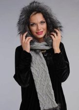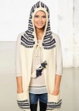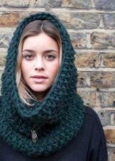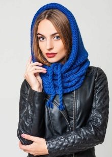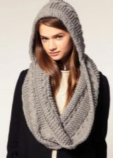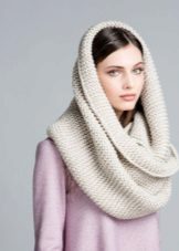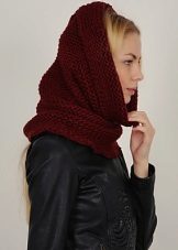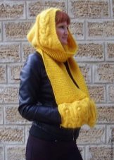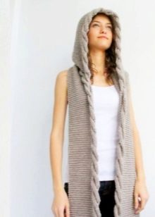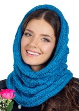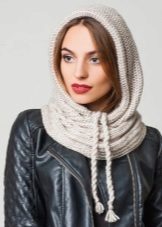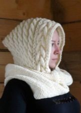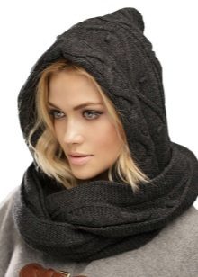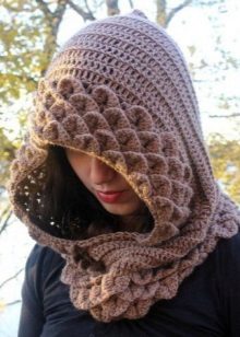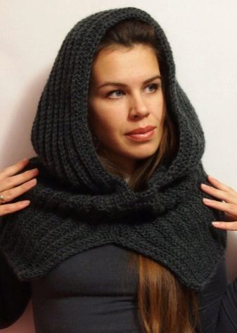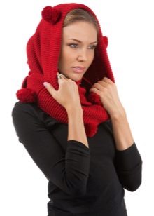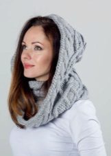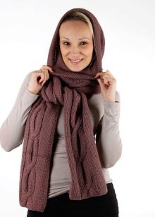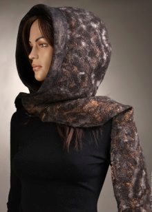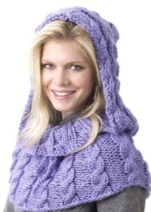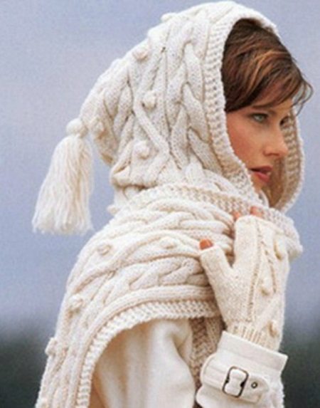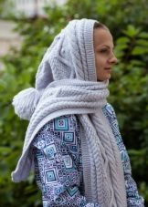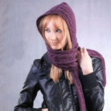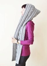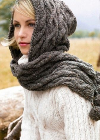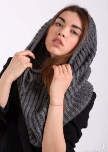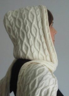 Knitted patterns can be made from woolen yarn, both thin and thick. Designers offer scarves of lace, smooth or embossed knitting. The scarf-hood can be decorated with any pattern that is used when knitting scarves.