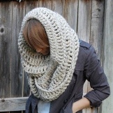A scarf with a collar is a functional thing. It perfectly protects from the wind. The scarf can be beautifully laid in a circle or transformed into a warm hood.