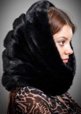 Scarves-hoods made of mink look rich and luxurious. The beautiful sheen of the fur gives the model a charm. An unusual cut stands out from the rest. Externally, the scarf-hood is very similar to a hat, but with long ends. This model is very popular with young girls.