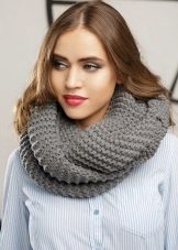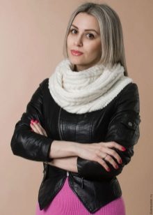 The classic solution is a snud of white, black and gray. These shades are suitable for all women, as well as harmoniously combined with other colors. A white or gray scarf refreshes the face, rejuvenates it.