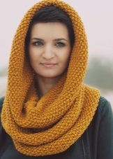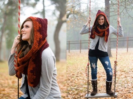Scarf hood can be made of different materials. Knitted models that can be knitted or crocheted independently are very popular.