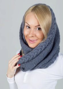 Snood or pipe is another type of hood scarf. This model is very similar to a collar, but at any moment it can easily be transformed into a headdress. Snood is very easy to bind on your own. It can be seamless if you use circular knitting needles, or consist of two parts that will be sewn with an invisible knit stitch.