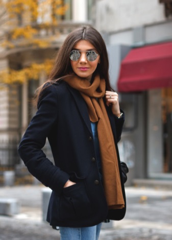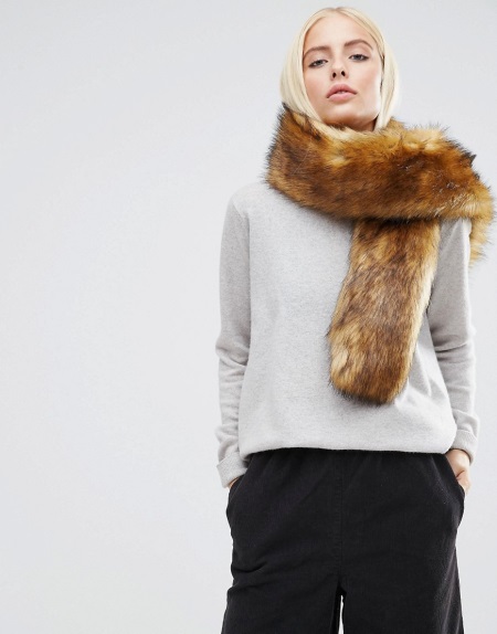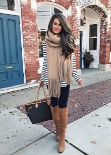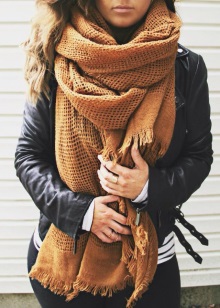 - A tan scarf, approaching red in basic tones - this is a rich shade of autumn. It will be appropriate for daily walks, as well as for creative people.