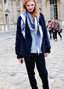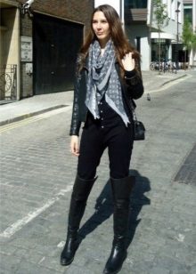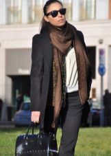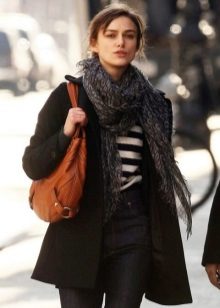 Even if the choice fell on the male color of the scarf, it fits perfectly in tandem with heavy boots with solid soles, a long coat and a gray hat. For lovers of black, classic models and colors will come to help create the bow. They emphasize the severity of the outfit and add elegance.