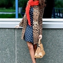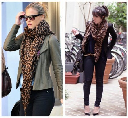If you prefer a sporty and comfortable style for a casual look, you can safely add a leopard scarf to sneakers and jeans.