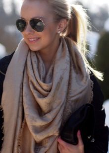 Despite the wide color palette of scarves, the undisputed leaders are shades of purple and lilac, they emphasize the femininity of the image. Cappuccino - adds chic and aristocracy to the image. White cloud - emphasizes the tenderness of owners of branded scarves. California or pink contrasting, for example, with jeans and adding brightness to the image. It is these colors that are most popular among fashionistas.