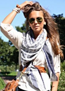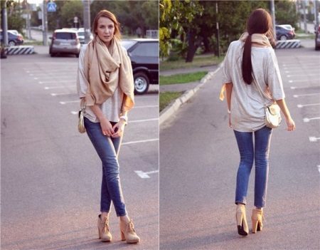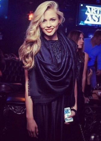 The size of the accessory allows you to wear it as an independent element. For example, a lightweight summer scarf can be tied like a top bandeau, which will give originality to the image. Stylists advise to wear warm stoles as a shawl or wrap their shoulders as imagination allows.