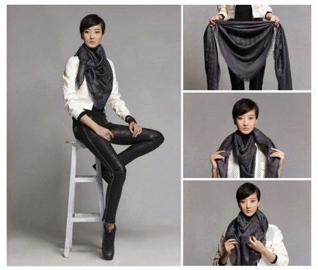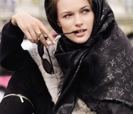 In winter, a classic stole will be worn as a headdress, giving it the shape of a turban or as a regular shawl. It is worth noting that such an accessory will look very advantageous with fur products.