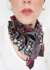 - To create a more attractive and shocking bow, you can recall that now in fashion bows and tie a scarf in this way. You should take a long and thin accessory so that there is no excess volume.