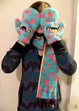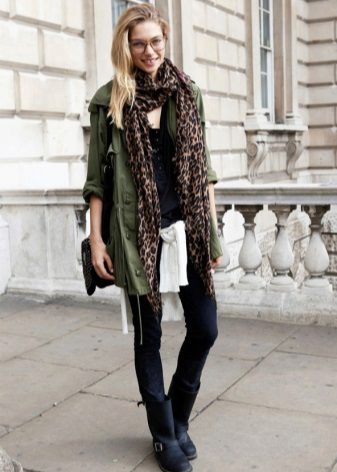 Teenagers can safely put on this season cartoon print scarves as well as pop art models. Another curious detail of the image will be a long knitted scarf, the ends of which reach the knees. Young girls can combine it with a parka and shoes on rough soles.