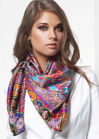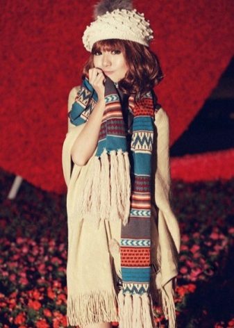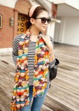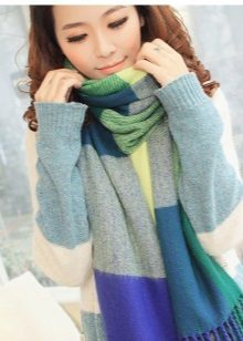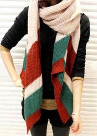 Large models should certainly be knitted and striped. But mini-scarves on the neck can be sewn from light material with any print, but it is better to leave a romantic impression. These are flowers, paisley cucumbers, or a bright ornament.