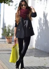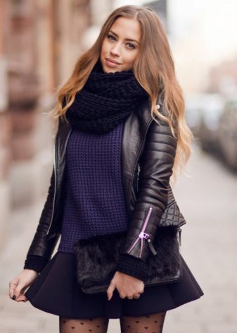An amazing property of a scarf is that it is able to make any outfit sparkling and individual. Many young ladies like to wear clothes in dark colors, so they have the right to stand out from the crowd with the help of original accessories.In this case, the scarf is stylish and comfortable at the same time.