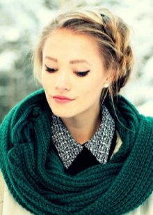 - Modern loop. This is one of the easiest and most fashionable ways to use a winter accessory. Hang the scarf over your shoulder so that one side is significantly longer than the other. Wrap the longer side around the neck once. Balance the loop around the neck so that it does not overtighten or create inconvenience. The ends can be asymmetric, or of the same length.