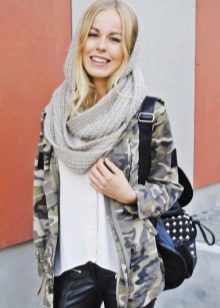 - Clamp effect. If you managed to acquire such a fashionable element as snud, then there should not be any problems with the scarf dressing. Just wrap it several times to create volume. This option is suitable for any type of outerwear.