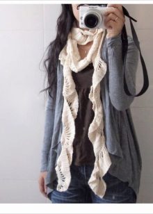 - Hand-made. The ideal method to get an exclusive scarf is to knit it yourself, or order it from a craftswoman who owns this technique. Moreover, things created with their own hands are at the peak of popularity.