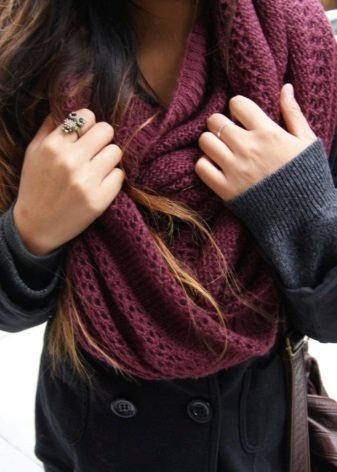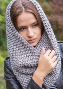 When a snood is not available, it can be made from an ordinary scarf. Just tie the ends of the accessory together, getting a round design. Then you need to crank the same steps as with the original clamp.