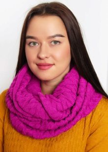 - Clamps. Products without end and edge continue to delight our girls with their convenience and relevance. This season, they should be knitted from a thick, coarse thread, and also decorated with stylish elements (buttons, artificial flowers, etc.) Remember that the snud should look massive and impressive.